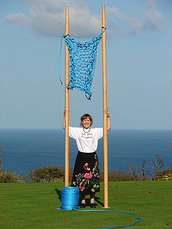 Le record mondial Guinness de tricot avec les plus grandes aiguilles appartient aujourd'hui à Julia Hopson[3] de Penzance (Cornouailles). Elle a tricoté un jersey de 10 mailles sur 10 rangs avec des aiguilles de 6, 5 cm de diamètre et de 3, 5 m de long.