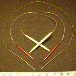 L'aiguille circulaire est une invention récente : composée de deux pointes reliées par un câble plastique, elle permet comme les jeux d'aiguilles à deux pointes, de tricoter en rond mais pour des ouvrages de taille plus importante, selon la longueur du câble, typiquement entre 60 cm et 1, 5 m. Il existe des kits spéciaux qui permettent d'ajuster le diamètre et la longueur des aiguilles circulaires selon les besoins : des bouts rigides de divers diamètres peuvent être vissés sur des câbles de diverses longueurs. La possibilité de travailler à partir des deux bouts de la même aiguille est commode pour divers types de tricot.