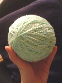 - fréquemment de laine, coton ou autre fil enroulé avec indication d'une longueur ou d'un poids. (source : fdehaie.free)