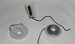 - les aiguilles circulaires, aiguille à deux pointes, d'environ 13 cm de long rigides et rectilignes, reliées par un câble flexible (d'habitude en nylon), donnant la possibilité de le tricot à plat ou en rond.