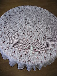 En combinant les augmentations faisant de petits trous en œillet, avec des diminutions assorties, on peut créer un tissu particulièrement léger ressemblant à la dentelle : c'est le tricot en dentelle, qui consiste en motifs et dessins utilisant de tels trous, plutôt qu'avec les mailles elles-mêmes[12], [13]. Les grands et nombreux trous de la dentelle la rendent extrêmement élastique : par exemple certains châles en Shetland sont appelés alliances, parce qu'ils sont si fins qu'ils peuvent passer à travers une alliance.
